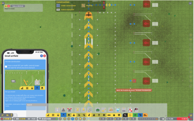 In the beginning, the game does have you sign a contract to build a small functional airfield before you can scale and become a bigshot airport. This is most likely to help first-time players get a feel of the system because it was a bit overwhelming seeing all the options the first time.
