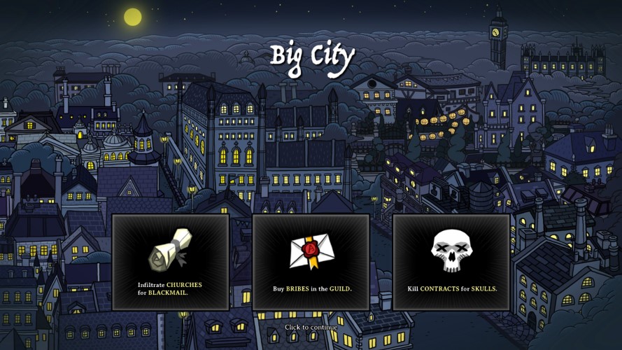 There are 6 different units in the game alongside your master thief. They are the urchins, gangs, thugs, assassins, truant officers, and saboteurs. The ‘master thief’ is your main unit—and the only unit able to perform more than one action. The master thief is also the only unit you have that, as of right now, can’t be killed. The master thief can use his/her action points to uncover up to 3 hidden tiles (these tiles need to be connected) or burgle/scout a building (or attack a killable unit once per turn, provided you got the dagger upgrade). If the building is hidden, then the building—and all buildings in the same district—are revealed to the player and the thief will enter the building on the tile you selected. If you know what the building is, then the thief will enter it. If the building is a regular house or a mansion, then the thief will burgle the building—assuming the building has anything that can be taken. If the building is a bank, trading house, church, bar, or orphanage, then the building will be scouted out and open for infiltration.