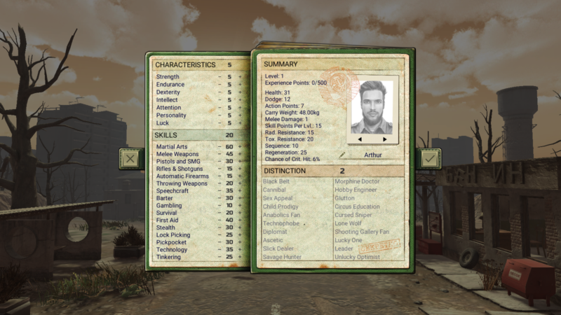 The thing that immediately stuck out to me about Atom RPG was its hardline commitment to role playing and all the facets that come with it. The depth and breadth of customization of your own player character was more than I anticipated. High variability in stat customization, a plethora of physical appearances, and strengths and weaknesses that the player decides. The game immediately leaps into determining who this person that will be traversing through alternate Soviet Russia exactly is and how they will behave. Playing Atom RPG is reminiscent of classical tabletop role playing games, with high degrees of customization and repercussions for the choices that the player makes.