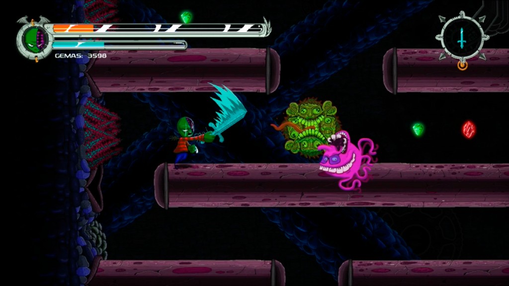 Nightmare Boy mixes pixel art and cartoon visuals, has complex metroidvania game mechanics, big environments full of secrets, enemies and final bosses. Also, it hides a dark story beneath the surface and the player will be the one unveiling it.
