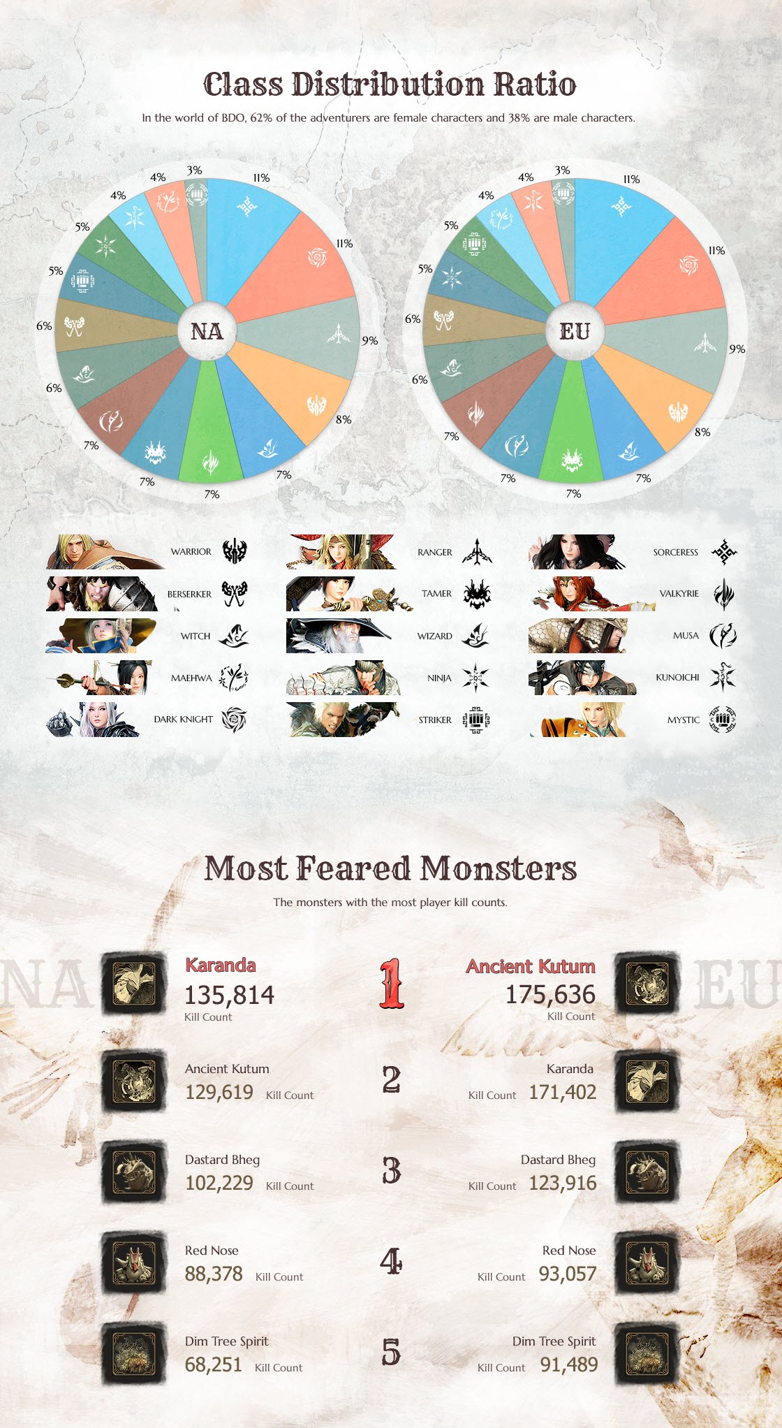Kakao Games and Pearl Abyss celebrate the 2nd anniversary with an infographic that details two years worth of in-game data such as cumulative playtime, quest completions and the number of times players died. Additionally, a new trailer has been released commemorating Black Desert Online’s best features.