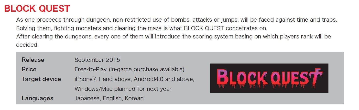 Wonderland Kazakiri has announced that old school action RPG game for Smartphones, Block Quest, is heading to Tokyo Game Show 2015.