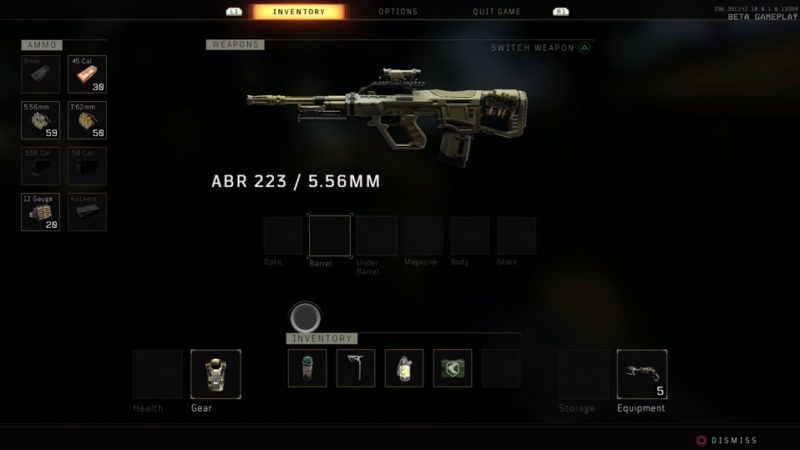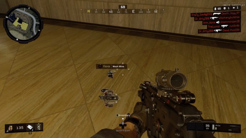 It’s hard to find a lot of value in the different guns simply because they mostly seem to function identically outside of major model differences. I imagine that there are some subtle differences between the various assault rifles, possibly limits on which attachments or ammo can be used, but for the most part a rifle is a rifle. A shotgun is a shotgun. A pistol is a pistol. And so on. It’s also a bit difficult to comfortably identify and pick up guns on the ground without standing right on top of them and staring downwards. The field of view on the PlayStation 4 version of the beta is a bit claustrophobic at times, at least for a game where being aware of your surroundings at all times is important. Firefights don’t last long unless players are roughly 40 yards or more apart and/or have cover to hide behind. Success is often about getting the jump on unaware players while avoiding having the same thing happen to yourself.