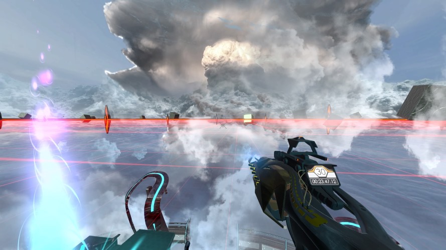 It is possible to finish the game without ever unlocking the blast ability. Perhaps this is a design decision to encourage multiple playthroughs. Speedruns would be another way to enjoy this game a second time. The already small audience this game attracts would very much be inclined to watch streams of the best speedrunners battling to finish with the lowest time. The game definitely caters to these players by offering a timer right on the screen of the SwitchGun.