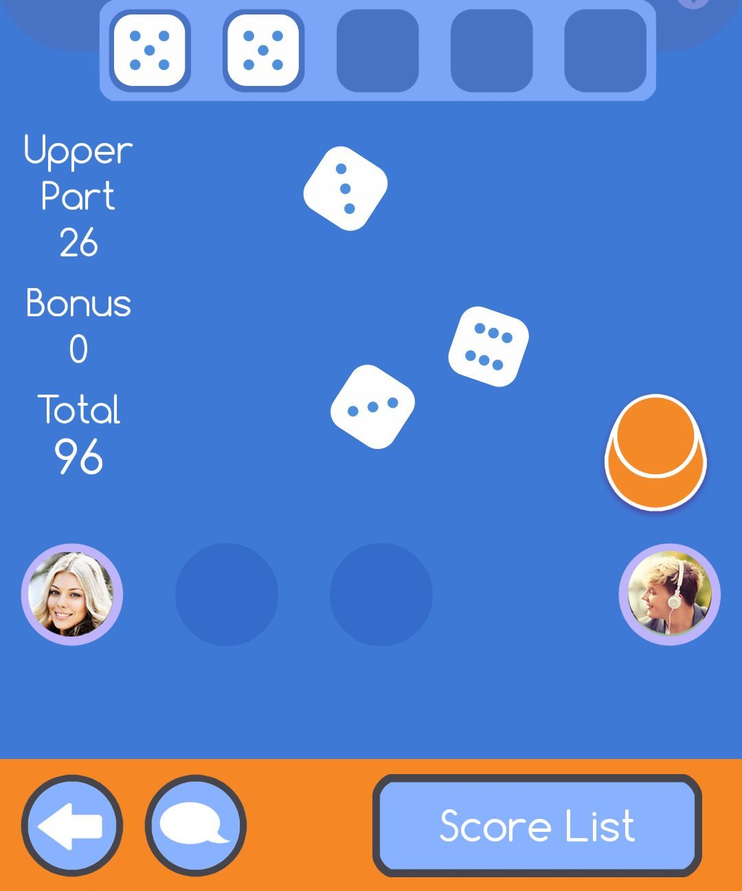 The aim of Dice Duel is to get as many points as possible by smart dicing. Each player has to dice once per turn. Each turn contains up to three throws of the dice. The first throw takes place with all five dice. Then each player can put aside the dice he wants to keep. The result can be improved by the second and third throw. At the latest after the third throw, one of the result fields has to be clicked on. The diced number of pips or the points of a combination with specific point values is registered automatically. If no entry is possible one of the fields has to be crossed out, that means one field is clicked on and 0 points are registered.