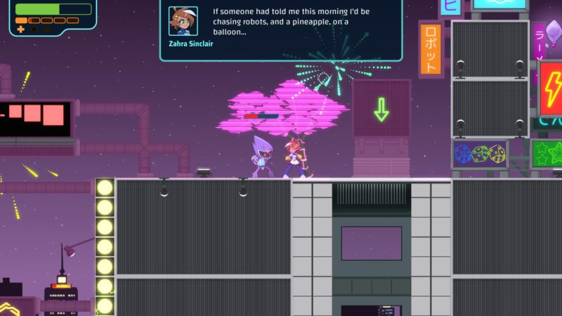 Each of the 3 worlds plays very differently from each other. I liked this as it fit in with the theme of each world being contained in a separate universe. Aside from having different enemies and level design, each world also had a gameplay mechanic that didn’t appear in the other 2. In the Goo world, there are surfaces covered in different colors of goo that have various effects. In the Dinosaur world, there are grappling points that act like zip-lines. In the Robot world, there are balloons to hang on to that allow you to move vertically through the world.