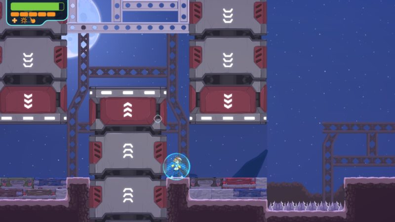 After beating the boss of each world, you gain a clue that specifies who the traitor isn’t. After collecting all 3 clues, you proceed to the game’s final act. While I thought the story of the game was just okay, I will admit that they did a good job of hiding the traitor while simultaneously building up to it. As this game takes place in the multi-verse, one of the game’s characters is an alternate version of the main character who openly hates the organization you work for. While her inclusion might feel like an abuse of the game’s setting, her appearance actually makes a lot of sense by the game’s ending. As for the gameplay, it plays similar to a game series called Megaman. You can run, jump, and wall-jump.