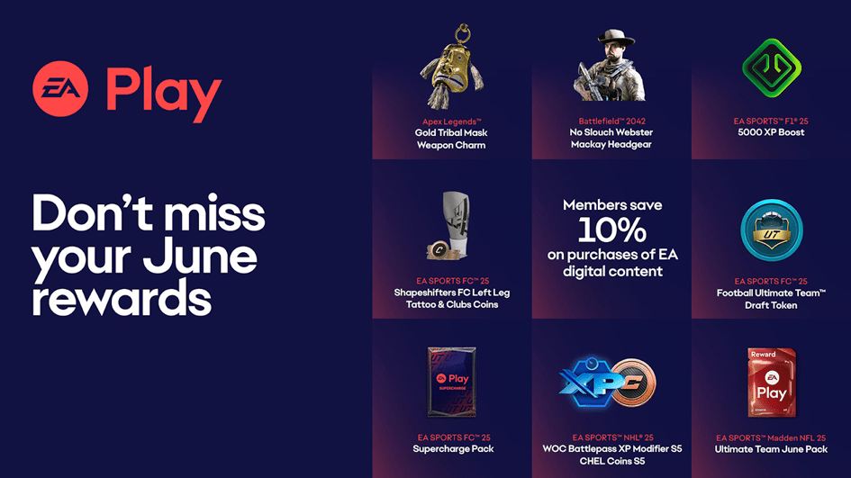 Join the Play List on June 12 to experience all the thrilling comebacks and thrilling penalty shootouts in EA SPORTS FC 25, which grants EA Play members unrestricted access. Members will be eligible to receive in-game rewards, such as a limited-time Supercharge Pack that will be available from June 12 to July 12, as well as regular rewards like Football Ultimate Team Draft Tokens and seasonal Clubs Rewards, in addition to access to the game and all of its modes, competitions, clubs, and stars.