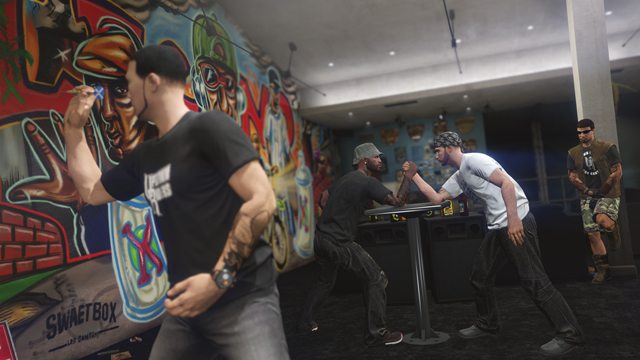 Your MC’s Clubhouse is the base of operations. Choose from 12 available locations across the salty shores of Paleto Bay to the streets of Rancho, and make your purchase via the new Maze Bank Foreclosures website. Each Clubhouse comes complete with its own bar, activities like Darts and Arm Wrestling, various murals and the option to upgrade to your own in-house Custom Bike Shop.