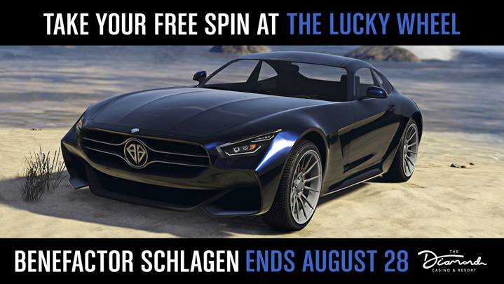 Hit the lobby of The Diamond Casino & Resort for your free daily spin of the Lucky Wheel – the opportunity to score GTA$, special clothing items and this week’s special podium vehicle, the Benefactor Schlagen GT.