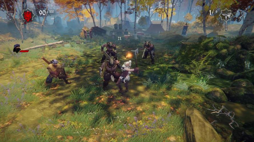 The game has been designed as a fully playable card/dice game plus a third person sword/axe fighting. The game starts with explaining the basics, and we have certain cards in the order which you have to open and reveal the customized story. In case of the card show up the encounter with the bandits or any kind of enemies, it turns out to be a third person fighting sequence, which is dodge and fight mechanism.