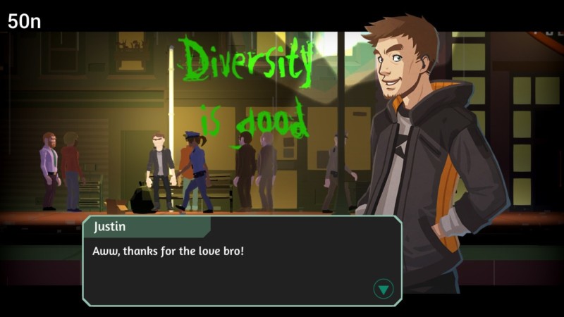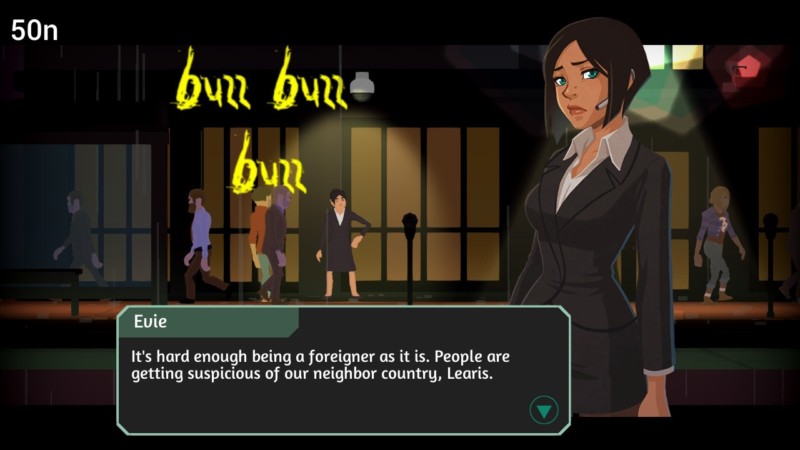 To explain Headliner: NoviNews, one needs to understand how the game works mechanically. The game is somewhat bisected into two sections of gameplay. At one point, the player is being presented with stories and scrolls through them at their desk, approving or throwing away stories. Sometimes there are limitations on what can be published, such as suggestions from the other characters, or a certain quota of stories having to be approved or discarded. Having a restriction means bringing more attention to certain voices and issues more so than others, regardless of intent. Those choices then have residual ripple effects in the other half of the game. In that portion of the game, the protagonist walks through the streets of Novistan on their way back to their studio apartment. On this walk, they can engage coworkers and local shop owners, even your own sibling, who’s trying to kickstart their stand-up career (aren’t we all?) It’s in these interactions that the decisions made at work come to fruition on a personal level, often times in conflict with the well-being of these people. Outside of those conversations, many visual clues portray the manifestation of those decisions, including random passersby on the street gossiping about the latest news, all the while a mysterious illness plagues the people of Novistan.