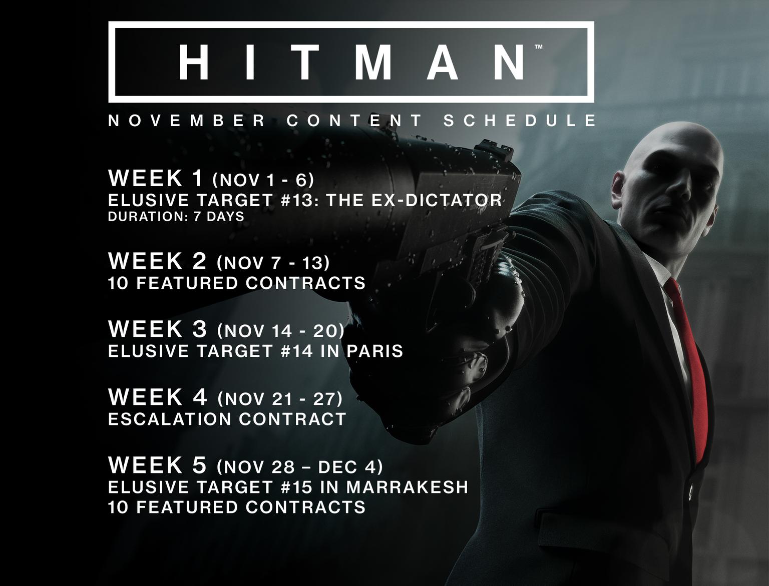 Following today’s release of Episode 6: Hokkaido, Square Enix and io-interactive will continue to release live content across all locations. Elusive Targets, Escalation Contracts, Featured Contracts and Challenge Packs are all in the pipeline and to give you an idea of the plans at this stage, the November Content Schedule shows everything that is coming throughout the month.