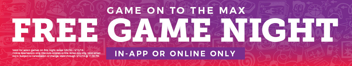 The online and kiosk-based gaming rental hub will be offering a free game night on select games when reserved online via redbox.com or the Redbox app, all of which can be found on www.redbox.com/marchgamesweek. The campaign will run through March 12, 2018.