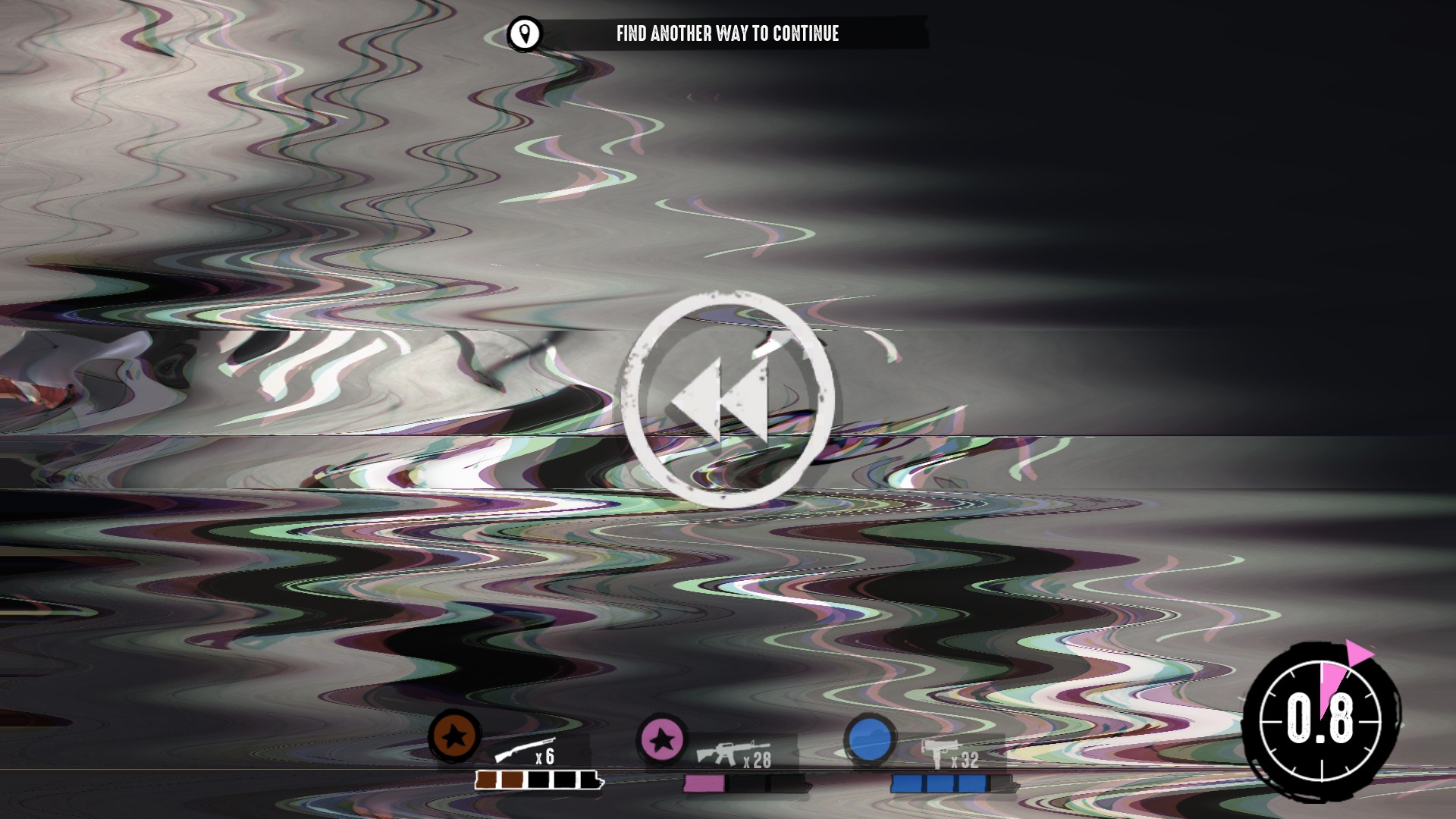 When I switched control to the second character, the game would have a reminder that the second character had died. As a result, I would try having him follow the first character to avoid being killed. The enemies that stopped to attack my second character the first time will instead keep moving forward since there is no longer a character there for them to shoot. The first time I was in control of the second character, I had him take another path my first character had not taken. The enemies that were charging ahead—the ones that, in the first rewind, hadn’t moved due to shooting a character that was no longer there this time—would follow my first character and start shooting at him. Because those enemies had not been there when I was controlling him the first time, he acted as though they were not there. This resulted in him being killed and me needing to restart from the last checkpoint in the level.