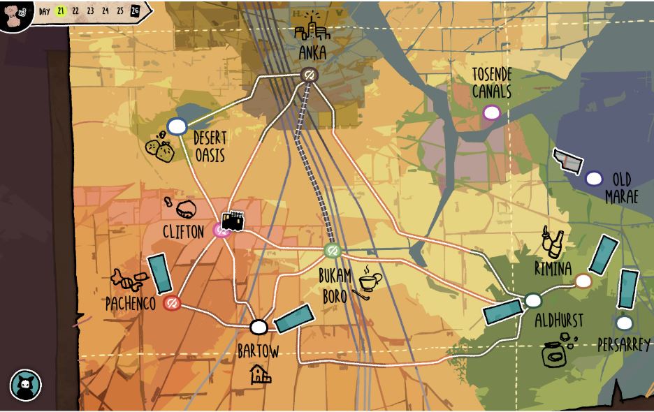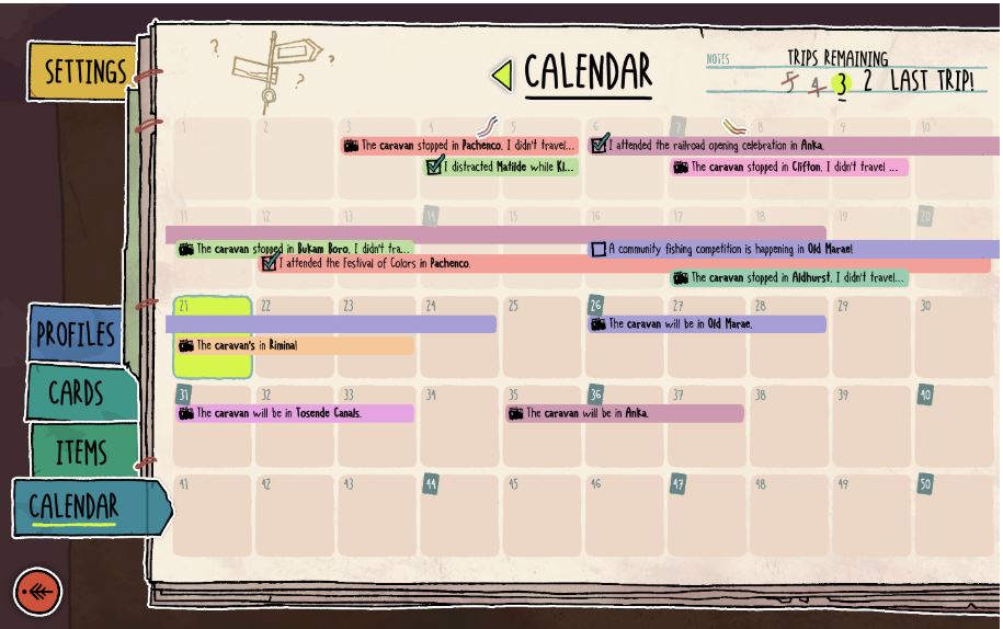 In Signs of the Sojourner, you play as yourself. You are tasked with taking over your mother’s shop after her death. You have 5 days to travel to many locations and connect with various people, learning their stories and their connection to your mother while also acquiring goods to sell at your shop.