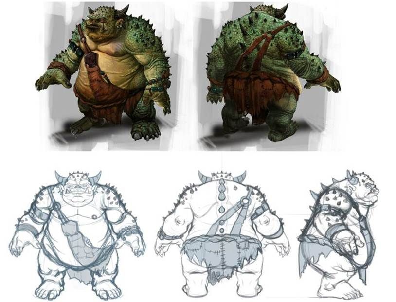 Here is what they had to say about the Ogrim creation: “When creating the ogrim, we first looked at the Morrowind model and existing lore from The Elder Scrolls games. This helped us get a feel for the creature and gave us a great starting place for bringing it into ESO. As with any art that goes into the game, the ogrim began life in the concept phase. Concept artists drew up several thumbnails—quick, small sketches—with lots of ideas for visual direction. Once the Art Team settled on a direction, more images were created: color studies and several different, more detailed concepts were developed to be used as reference by Figure Artists. Below, you can see some concept art for the Ogrim.”