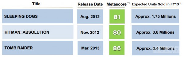 You can see below part of Square Enix’s financial report, which breaks down sales figures for each of its key releases for across the current financial year: