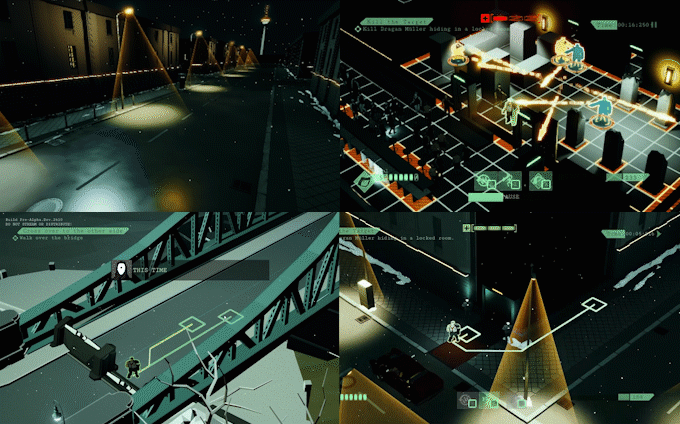 All Walls Must Fall is an isometric tactics game where action happens to the pulsing beat of the music. You control time travelling secret agents as they jump and loop through a single night in the city of Berlin. Using a pausable real-time system, carefully plan your decisions and use powerful time manipulation abilities to your advantage, as you carry out your mission in the shadows or in plain sight. Levels are procedurally recombined using a bespoke system developed by inbetweengames, giving All Walls Must Fall a highly replayable campaign structure, while still offering individually crafted components and set-pieces.