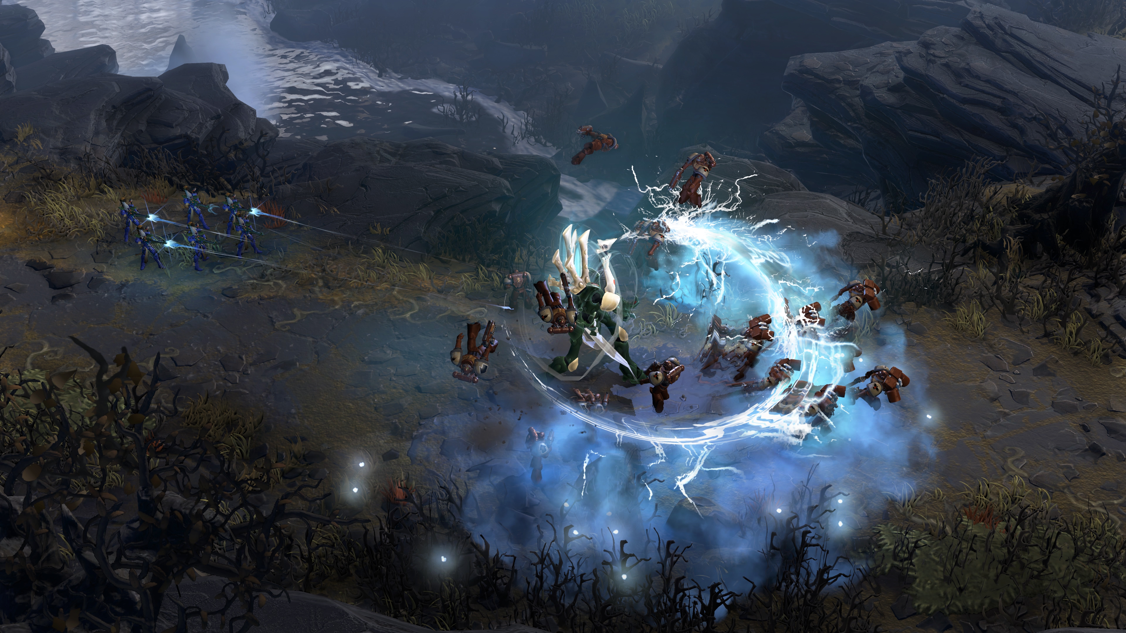 A mysterious prophecy, a powerful weapon, and a planet re-emerging from the Warp set the events of the single-player campaign in motion. Told from the perspectives of all three factions, you’ll uncover a dark truth lies beneath the surface as the fates of Gabriel Angelos, Farseer Macha, and Gorgutz ‘Ead’unter become increasingly intertwined. The 17-mission campaign challenges you to command epic heroes, assemble huge armies, and wage war across a range of hostile environments.